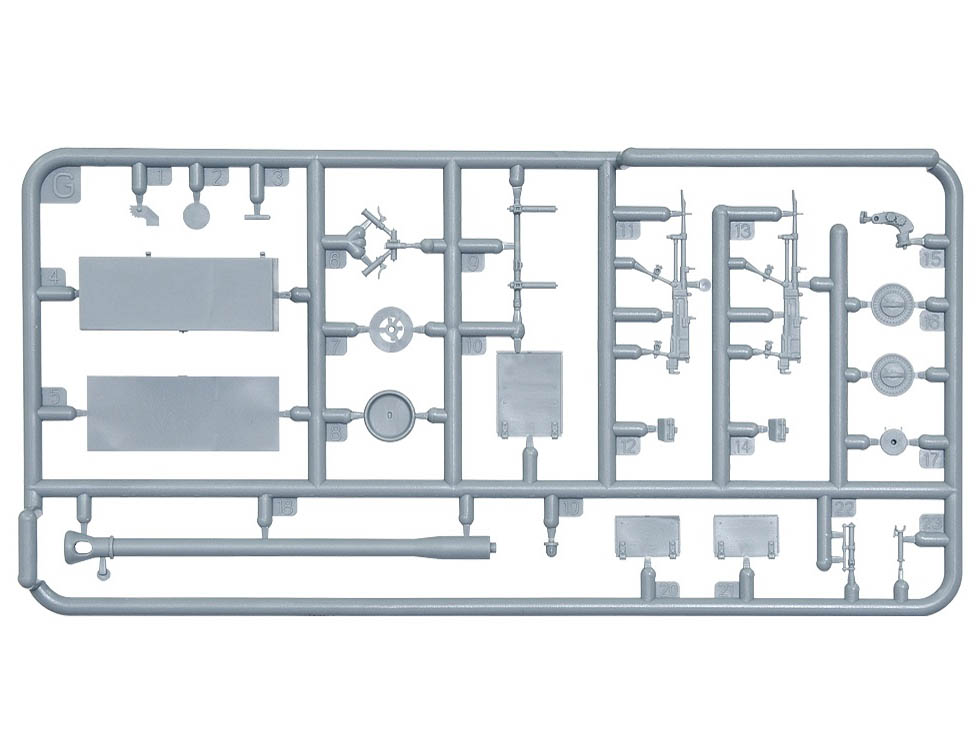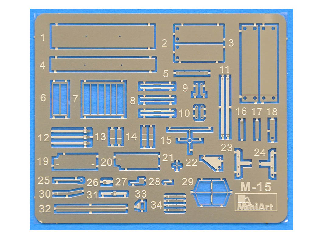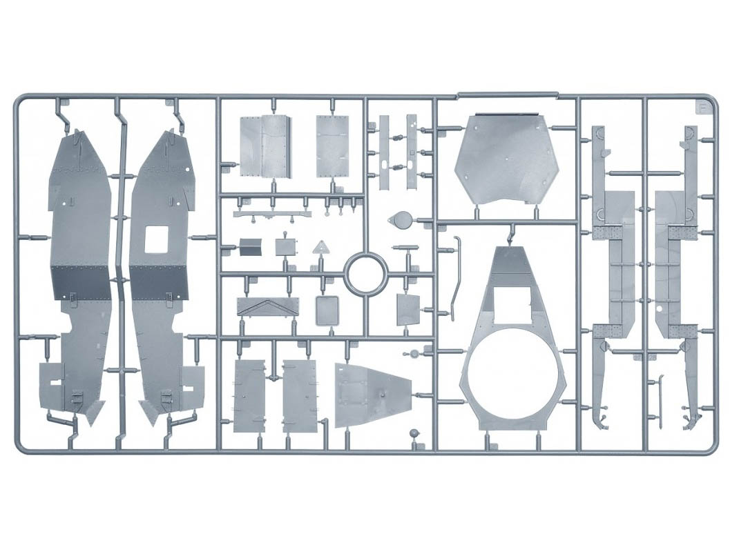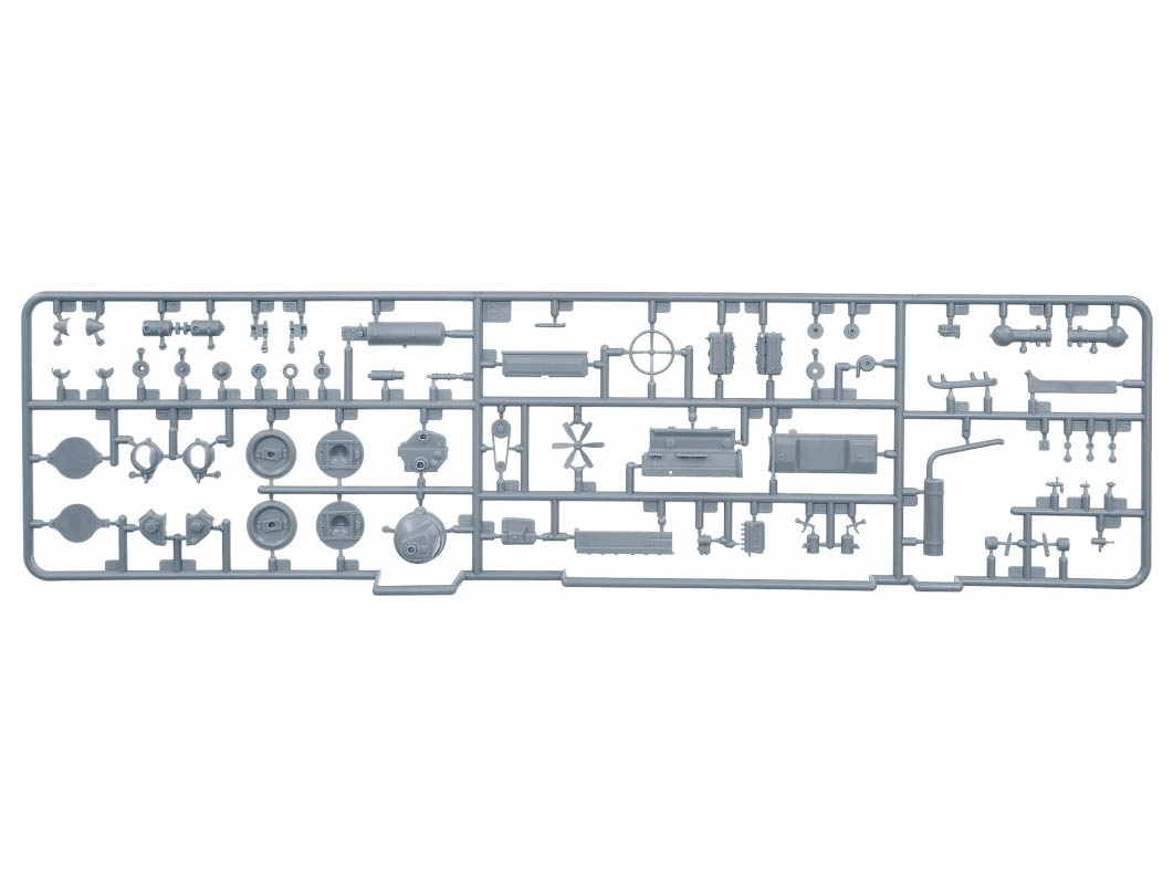 В комплекте полноцветная инструкция, реалистично выполненные элементы боевого отделения, ходовой части, моторного отсека, детально проработанные узлы и агрегаты, элементы из прозрачного пластика для боевых перископов, фототравленные элементы, декали и фигура водителя.