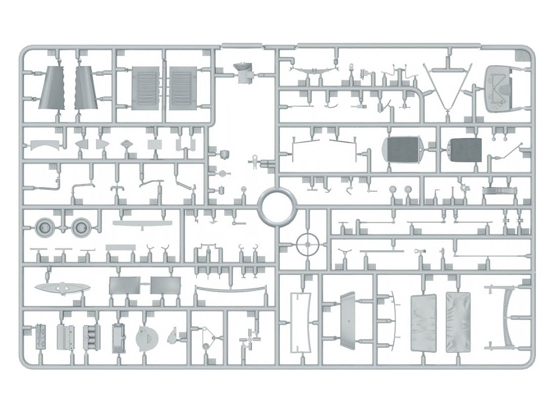 В комплекте полноцветная инструкция, реалистично выполненные элементы кузова, салона, ходовой части и мотора, детально проработанные узлы и агрегаты, элементы из прозрачного пластика для стекол кабины и фар, фототравленные элементы кузова, декаль.