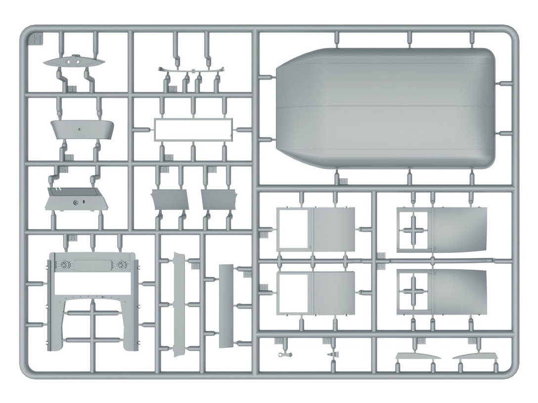 Набор пластиковых элементов для сборки модели советского санитарного автомобиля серии 03-30 в масштабе 1:35.