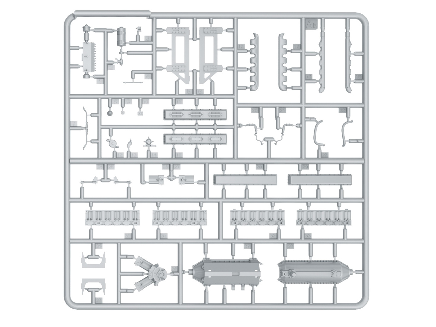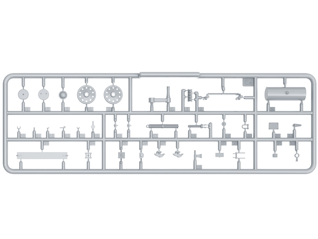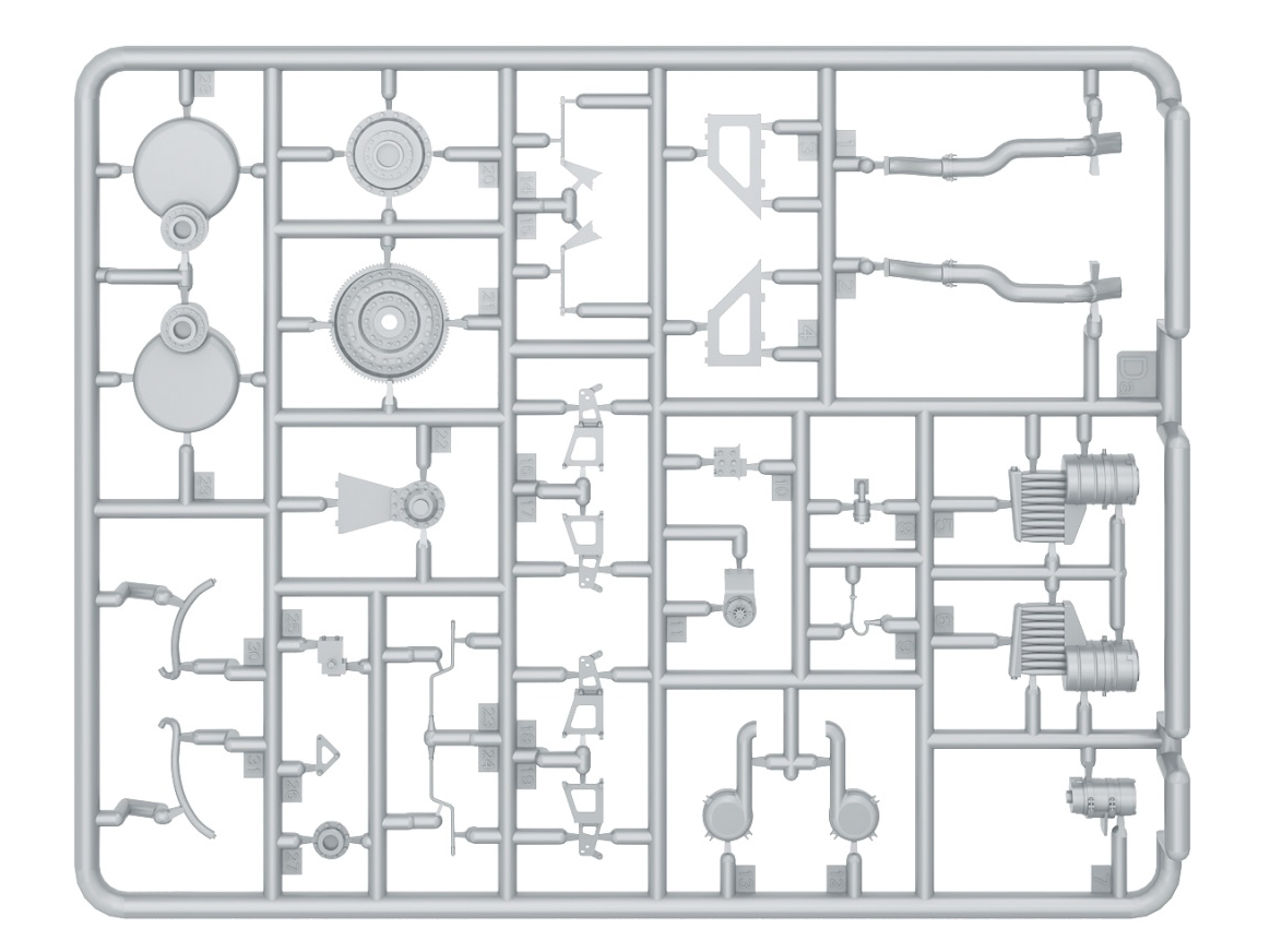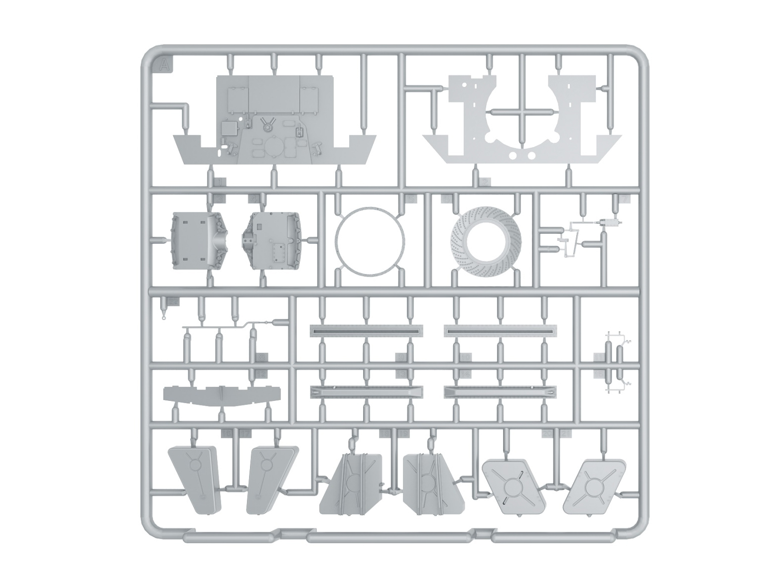 В комплекте полноцветная инструкция, высокодетальная модель СУ-85 с подробно проработанной ходовой, боевым отделением, моторным отсеком и трансмиссией, подвижными гусенечными цепями, с элементами из прозрачного пластика для боевых перископов, с фототравленными элементами брони, декаль.