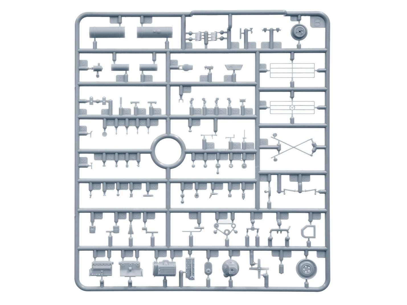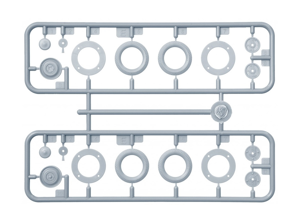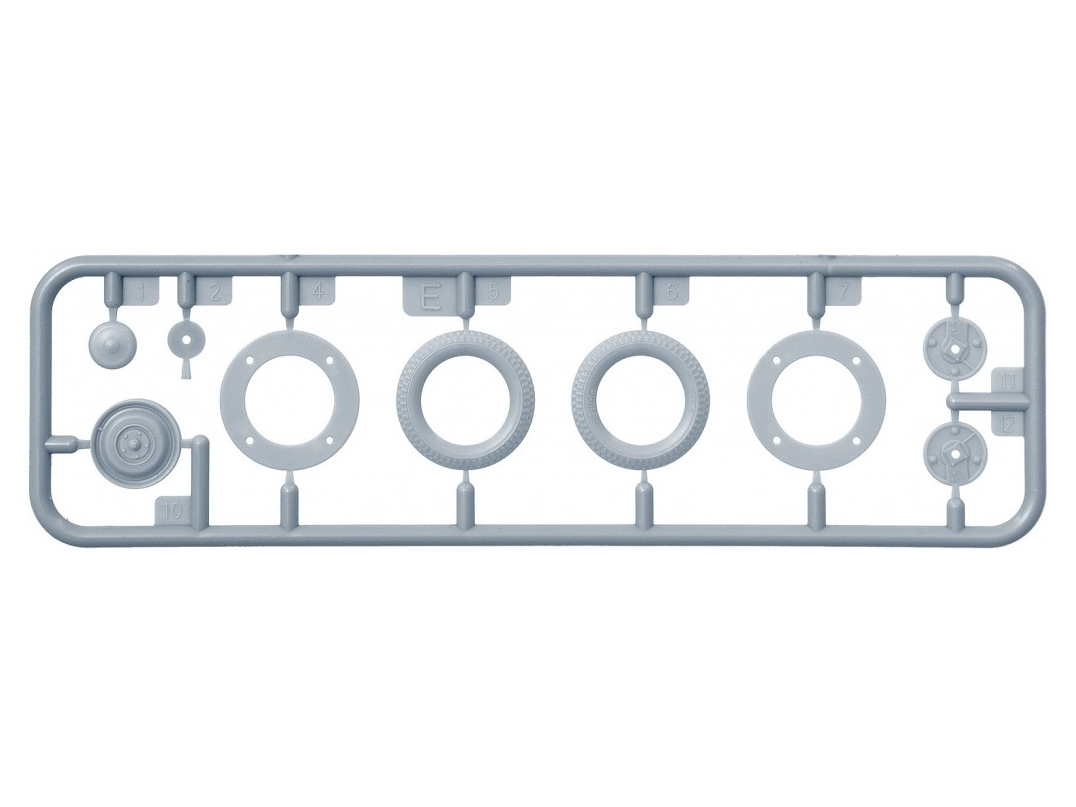 В комплекте элементы из прозрачного пластика для стекол кабины и фар, реалистично выполненные элементы кузова, кабины и ходовой части, детально проработанные узлы и агрегаты, фототравленные элементы, декаль для 11 вариантов сборки и фигура водителя.