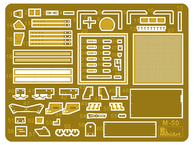 Набор пластиковых элементов для сборки модели советского легкого танка Т-60, выпущенного заводом №264 в масштабе 1:35.