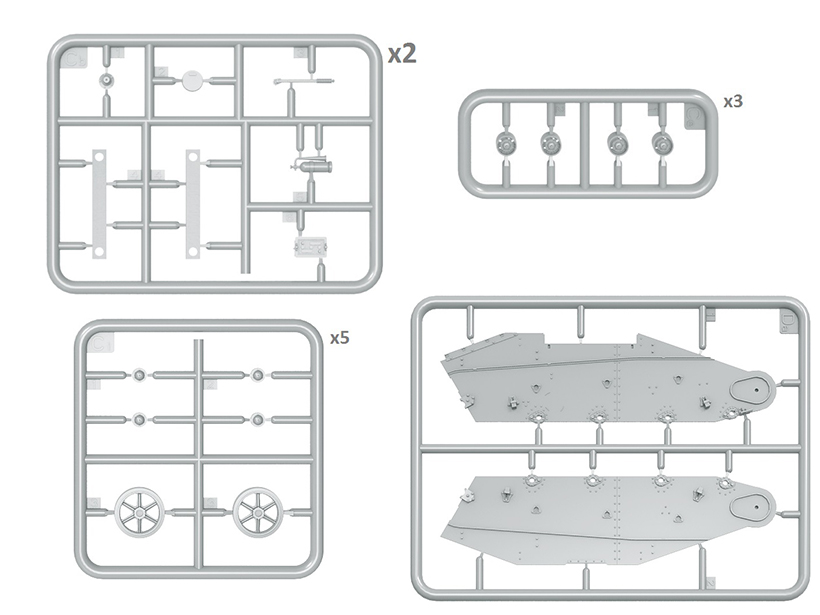 Набор пластиковых элементов для сборки модели советского легкого танка Т-60, выпущенного Горьковским автомобильным заводом в масштабе 1:35.