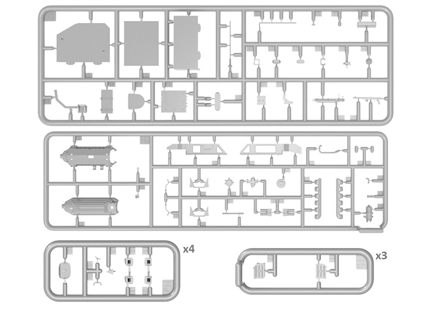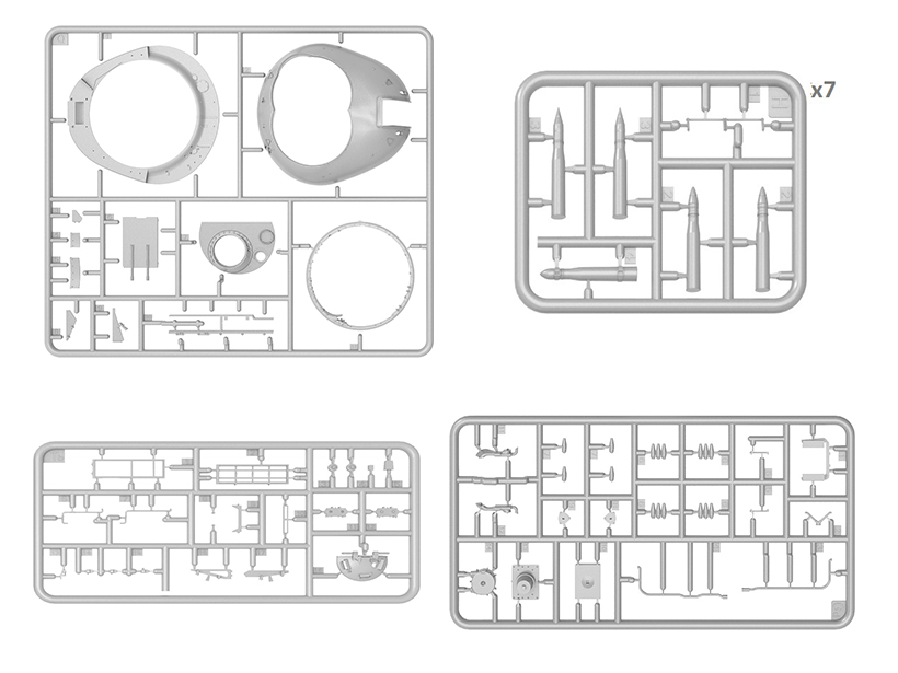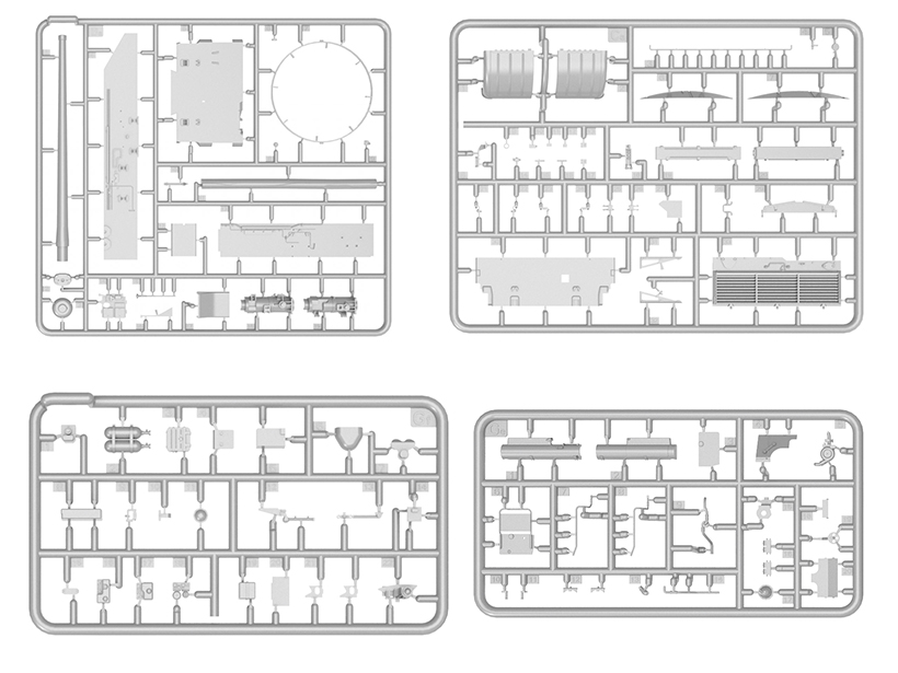 Сборка элементов осуществляется с помощью специального клея. В комплекте полноцветная инструкция, высокодетальная модель танка 54-3 с подробно проработанной ходовой, боевым отделением, моторным отсеком и вооружением, подвижными гусенечными цепями и рабочими торсионами, с элементами из прозрачного пластика, с фототравленными элементами брони, декаль для 7 вариантов, полный комплект боеприпасов.
