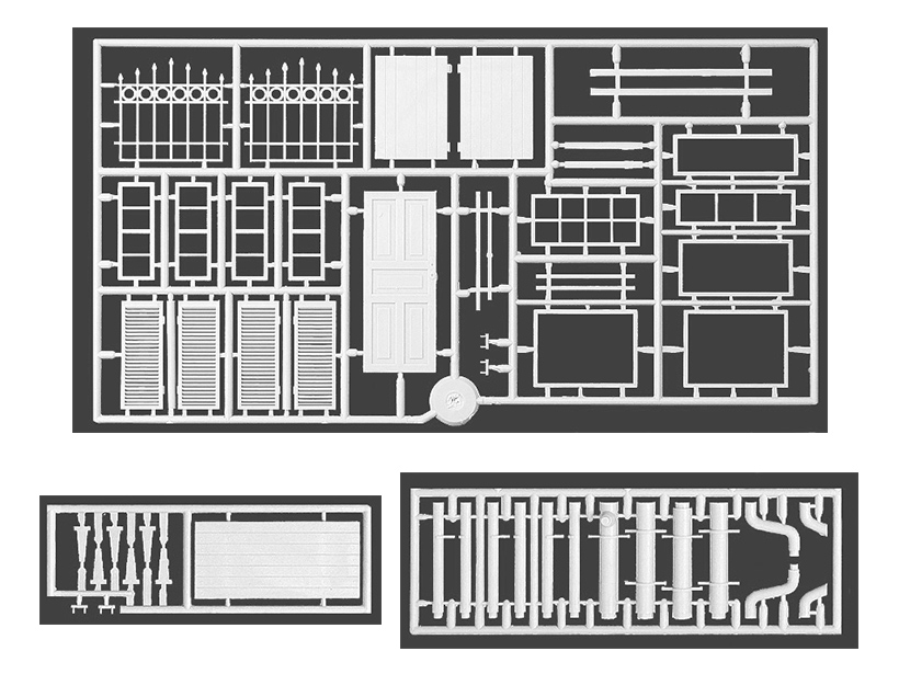 Набор пластиковых элементов для сборки диорамы европейского сарая в масштабе 1:35.