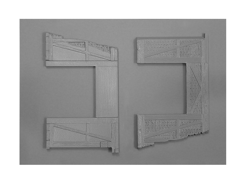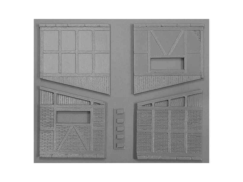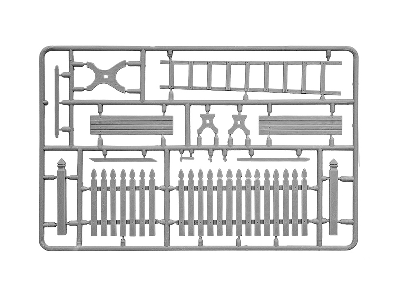 Набор пластиковых элементов для сборки диорамы сарая с деревянным забором в масштабе 1:35.