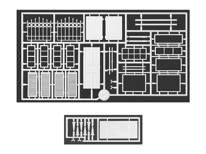 Набор пластиковых элементов для сборки деревенской диорамы в масштабе 1:35.
