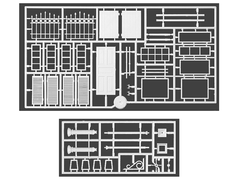 Набор пластиковых элементов для сборки деревенской диорамы с фонтаном в масштабе 1:35.