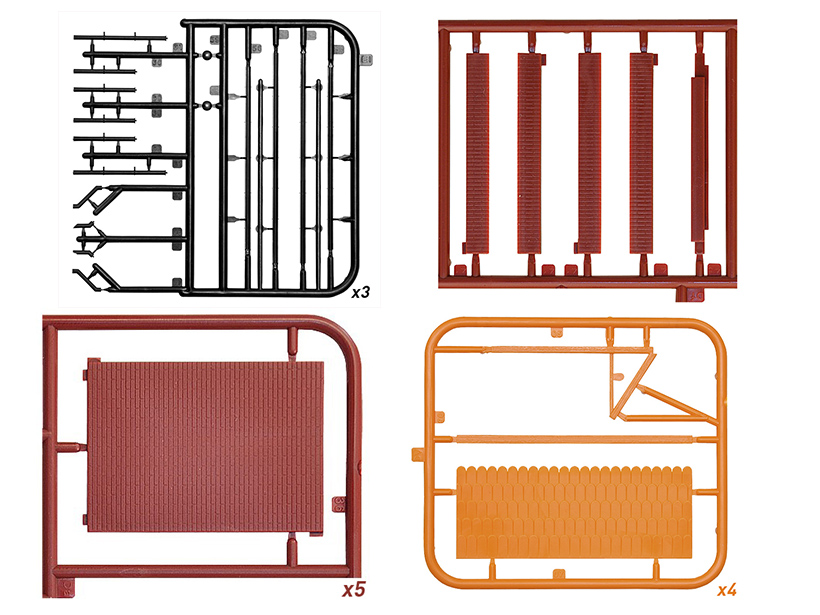 Набор содержит пластиковые детали 6 цветов и может быть собран без покраски.