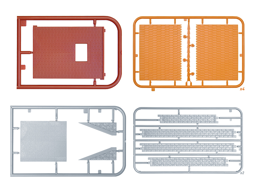 Набор пластиковых элементов для сборки пакгауза в масштабе 1:72.