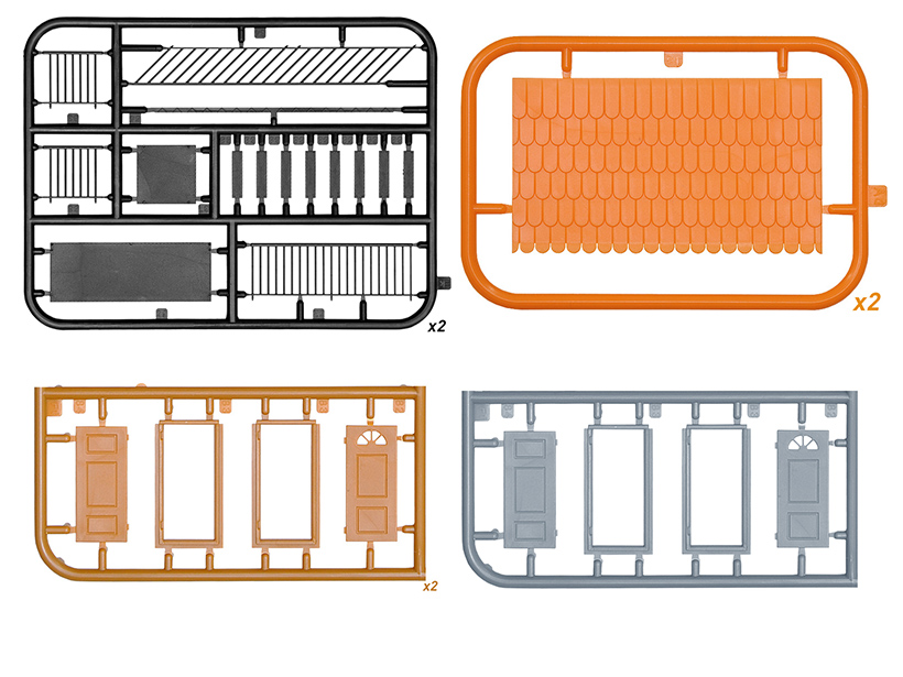 Набор пластиковых элементов для сборки здания пожарной части в масштабе 1:72.